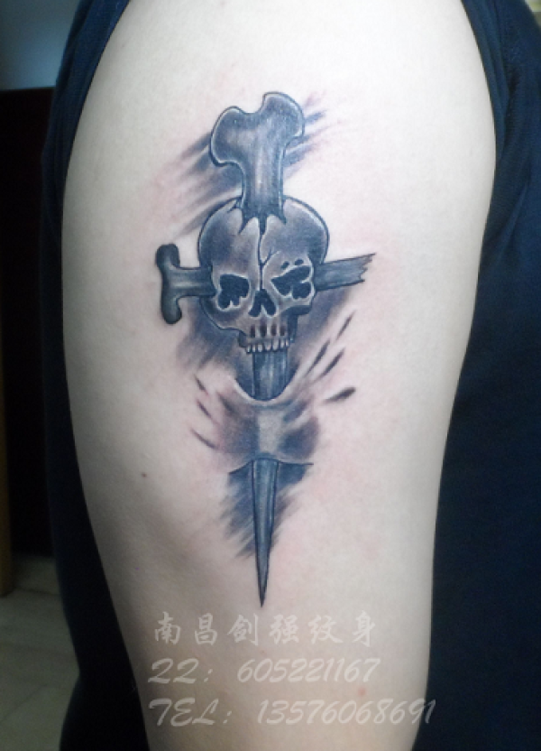 一款扎进皮肤的十字架纹身图案_十字架纹身图案大全_纹身图吧