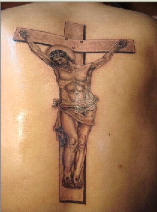 背部一款十字架耶稣纹身图案_十字架纹身图案大全_纹身图吧