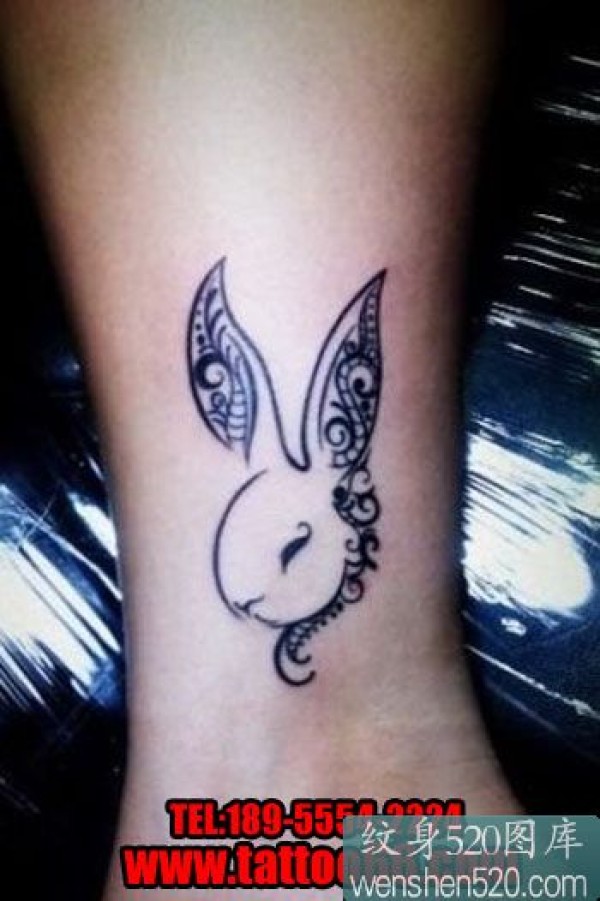腿部上的长耳兔头纹身作品_腿部纹身图案大全_纹身图吧