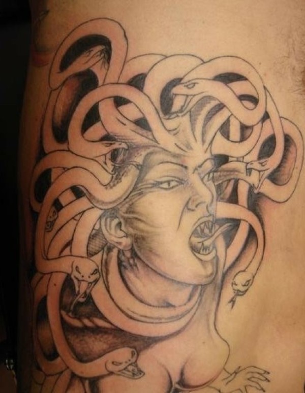大腿美杜莎蛇发女怪刺青_腿部纹身图案大全_纹身图吧