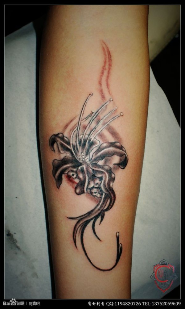 腿部蛇彩色莲花纹身图案_腿部纹身图案大全_纹身图吧