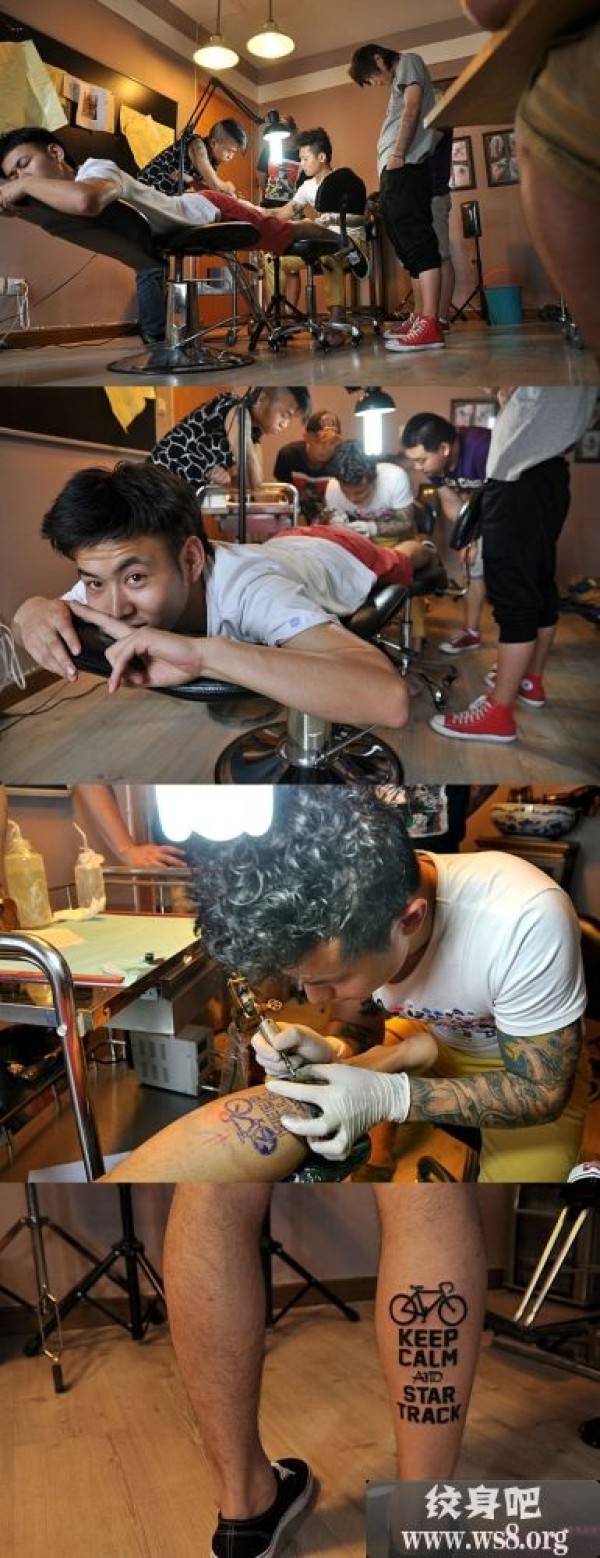 英语自行车创意腿部刺青现场图案_腿部纹身图案大全_纹身图吧
