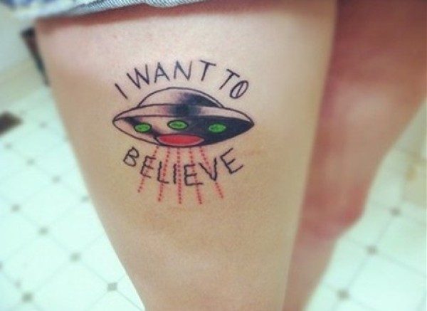 女性腿部彩色UFO可爱刺青_腿部纹身图案大全_纹身图吧