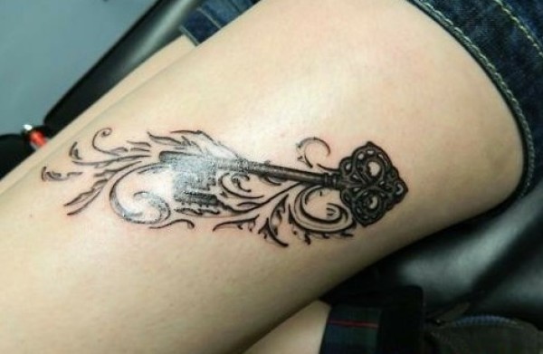 性感大腿纹理钥匙_腿部纹身图案大全_纹身图吧