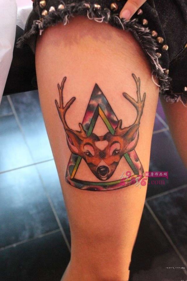 创意三角形鹿头纹身_腿部纹身图案大全_纹身图吧
