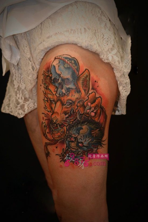 另类狐仙大腿纹身_腿部纹身图案大全_纹身图吧