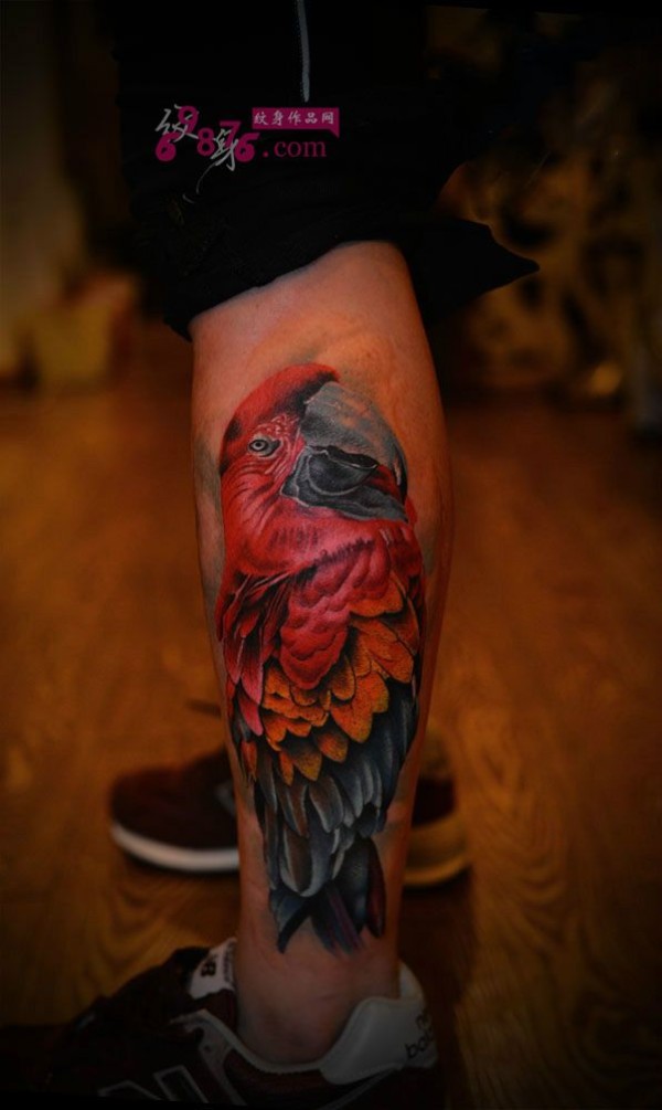 小腿霸气金刚鹦鹉纹身_腿部纹身图案大全_纹身图吧