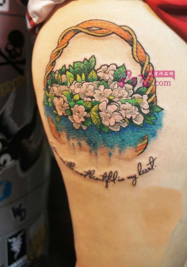 大腿美丽栀子花纹身_腿部纹身图案大全_纹身图吧