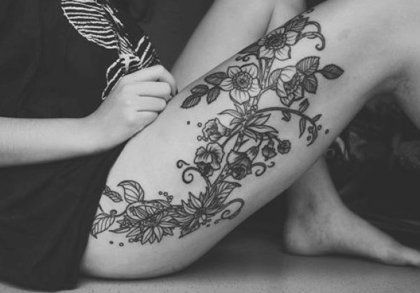 性感腿部的复古花纹身_腿部纹身图案大全_纹身图吧