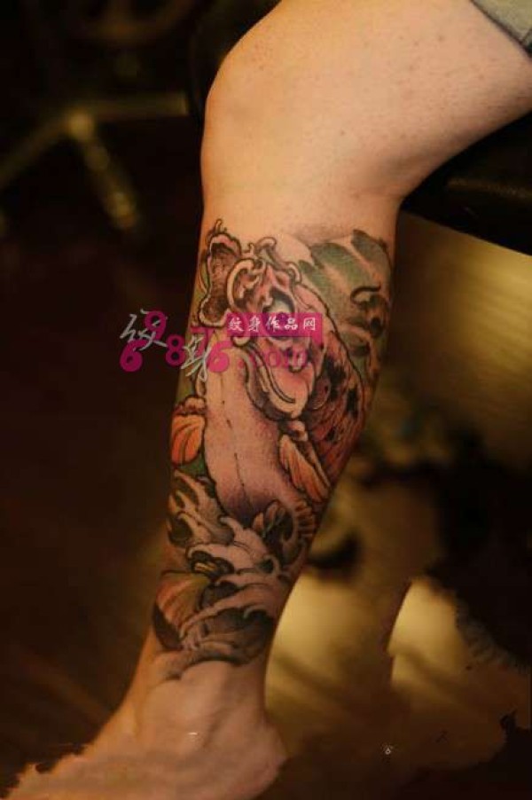 传统鲤鱼花小腿纹身_腿部纹身图案大全_纹身图吧