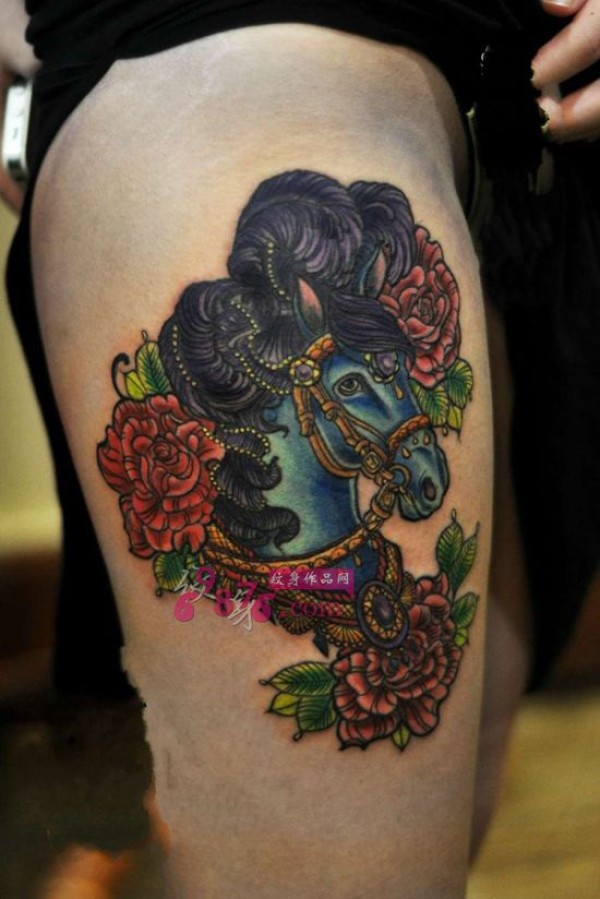 彩色马大腿时尚纹身_腿部纹身图案大全_纹身图吧