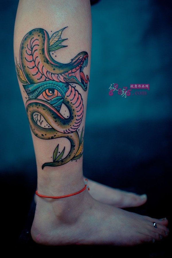 小腿眼镜蛇与上帝之眼纹身_腿部纹身图案大全_纹身图吧