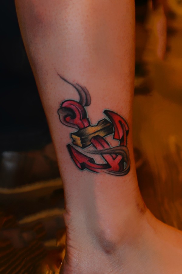 彩色船锚脚踝纹身_腿部纹身图案大全_纹身图吧