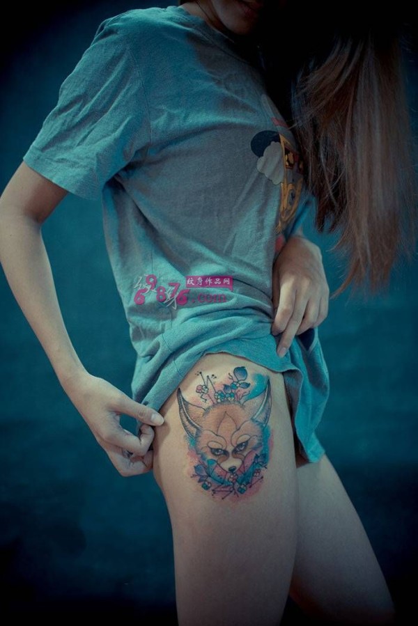 长腿美女小狐狸时尚纹身_腿部纹身图案大全_纹身图吧