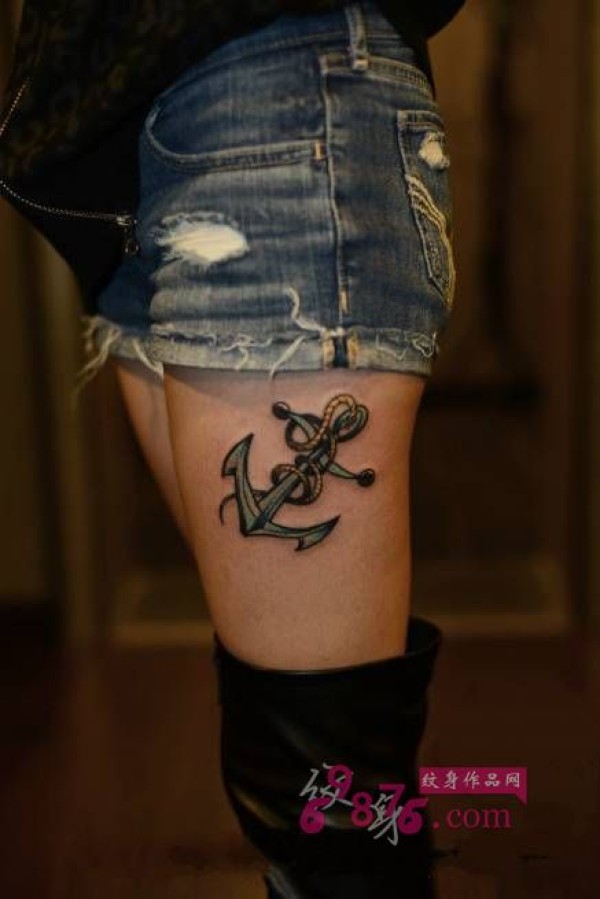 清新船锚大腿纹身_腿部纹身图案大全_纹身图吧