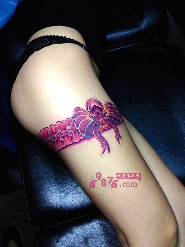 性感骷髅蕾丝大腿纹身_腿部纹身图案大全_纹身图吧