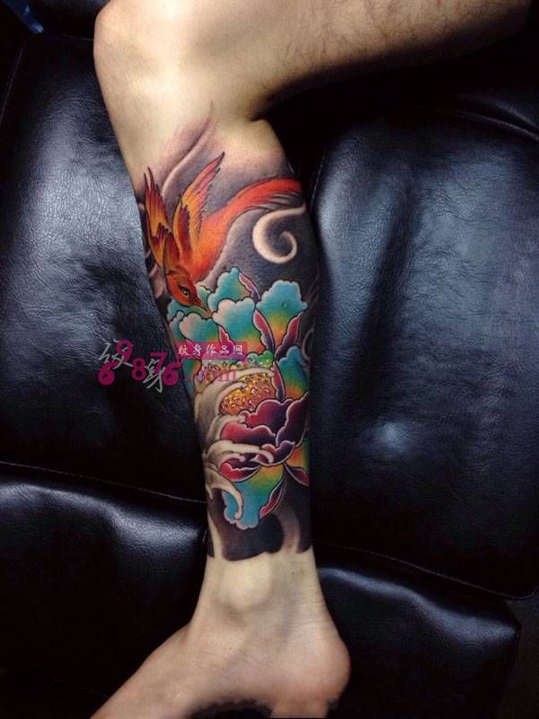 重彩莲花小腿纹身_腿部纹身图案大全_纹身图吧