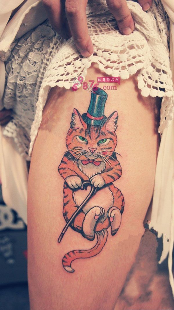 慵懒萌猫可爱大腿纹身_腿部纹身图案大全_纹身图吧