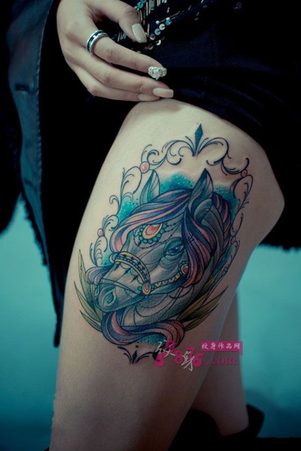 个性欧美风木马头像纹身_腿部纹身图案大全_纹身图吧
