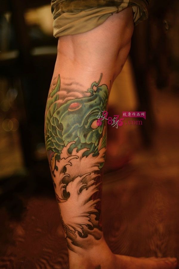 传统鲤鱼花小腿纹身_腿部纹身图案大全_纹身图吧