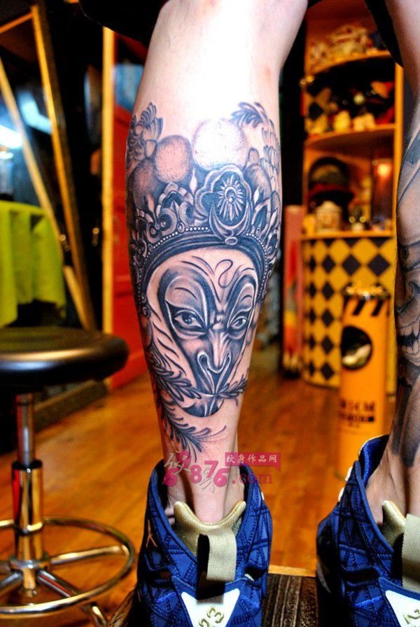 美猴王花腿个性纹身_腿部纹身图案大全_纹身图吧