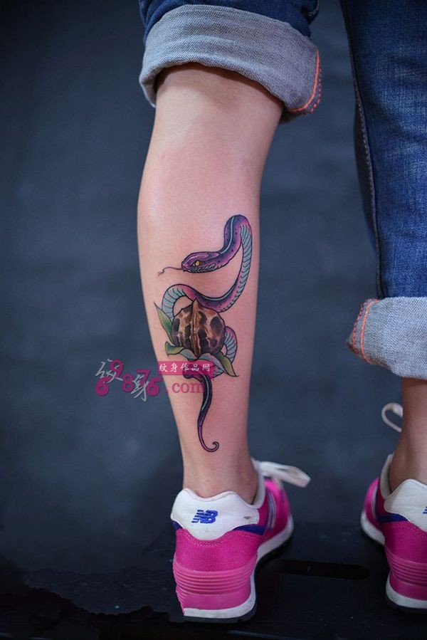 核桃小蛇个性小腿纹身_腿部纹身图案大全_纹身图吧