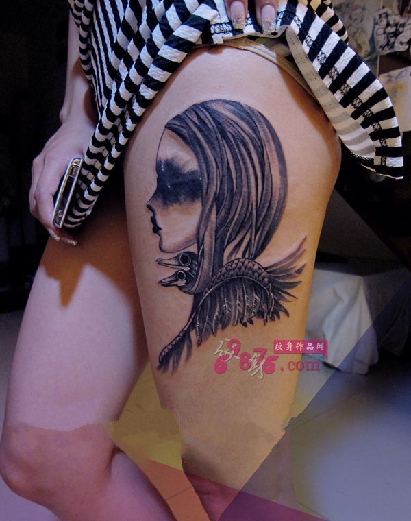 艺术风肖像大腿纹身_腿部纹身图案大全_纹身图吧