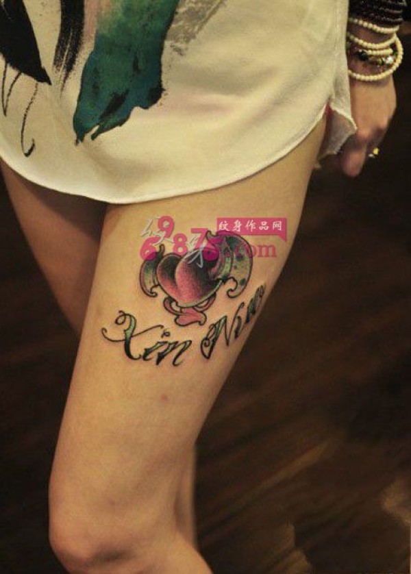 恶魔爱心个性大腿纹身_腿部纹身图案大全_纹身图吧