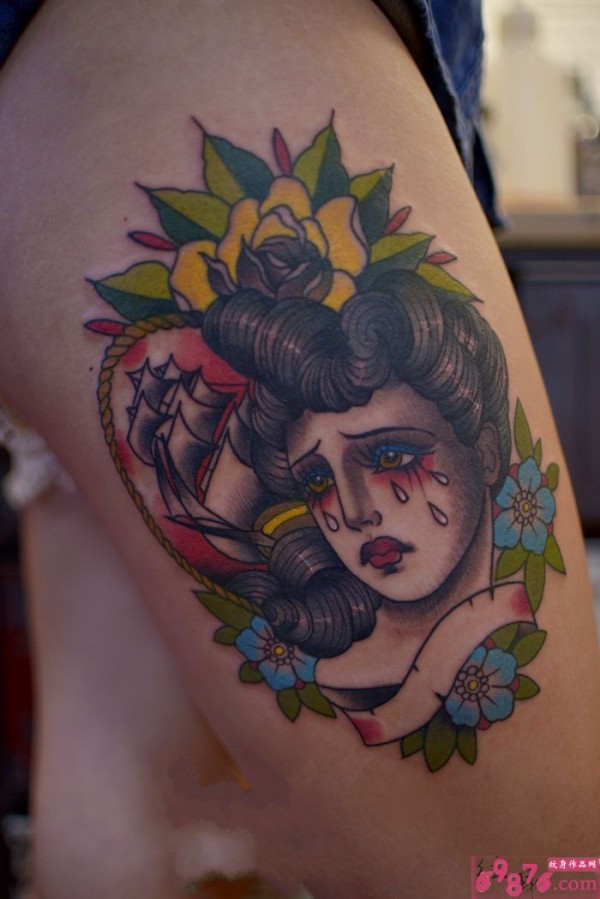 欧美风哭泣美女大腿纹身_腿部纹身图案大全_纹身图吧