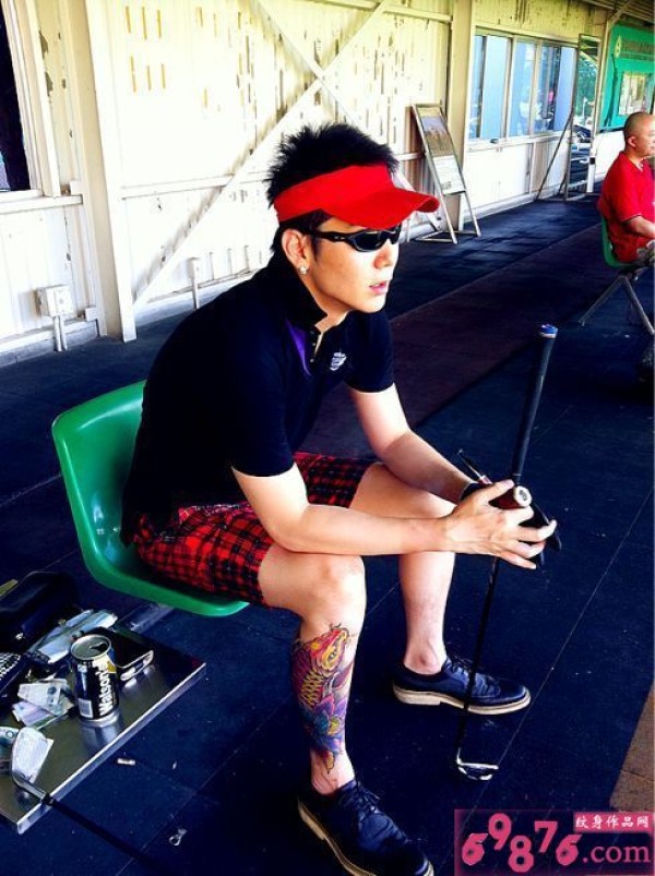 型男传统鲤鱼花小腿纹身_腿部纹身图案大全_纹身图吧