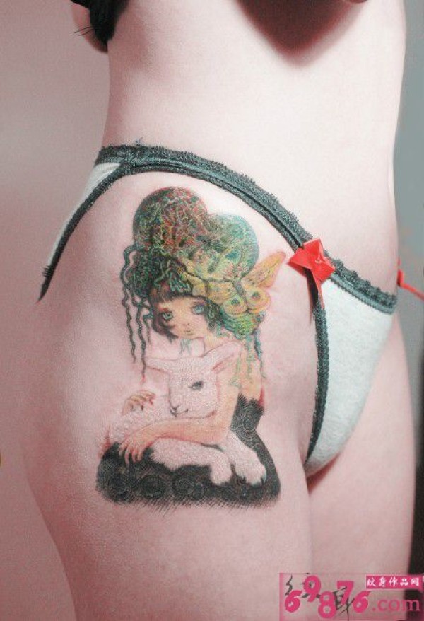 水母姑娘与兔子大腿纹身_腿部纹身图案大全_纹身图吧
