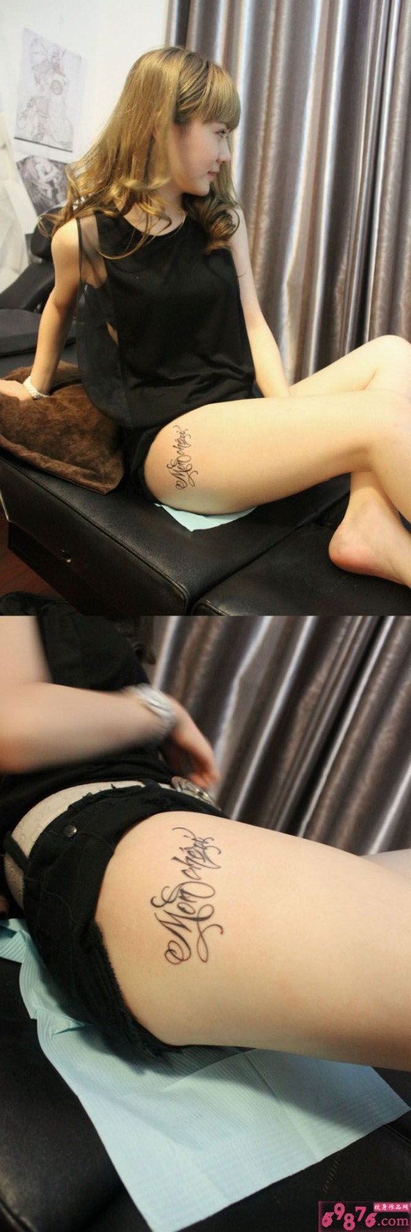 美腿美女花体英文纹身_腿部纹身图案大全_纹身图吧