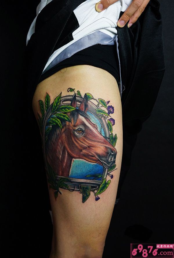 彩色马头大腿纹身_腿部纹身图案大全_纹身图吧