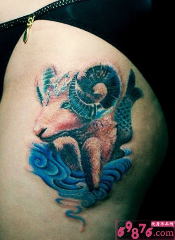 可爱摩羯座大腿纹身_腿部纹身图案大全_纹身图吧