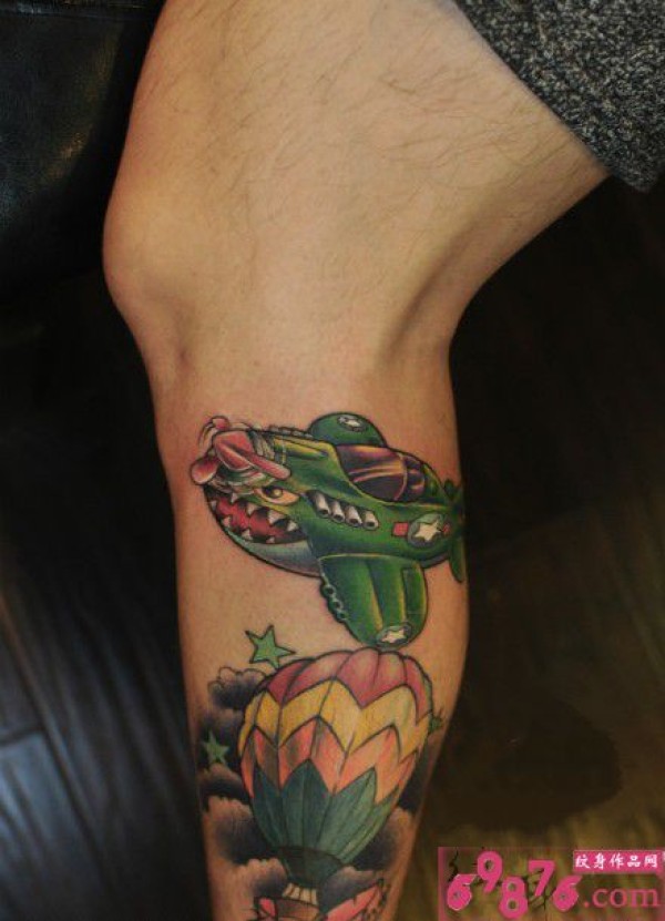 创意小鲨鱼牌战斗机刺青_腿部纹身图案大全_纹身图吧