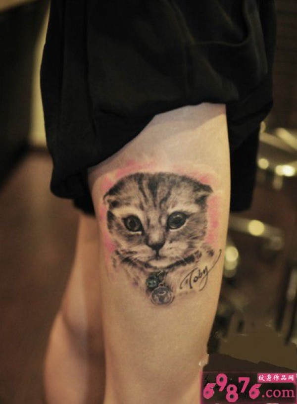 可爱喵星人大腿纹身_腿部纹身图案大全_纹身图吧