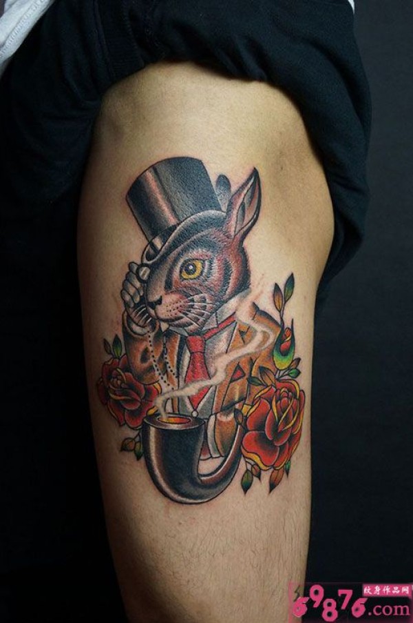 创意侦探兔先生大腿纹身_腿部纹身图案大全_纹身图吧