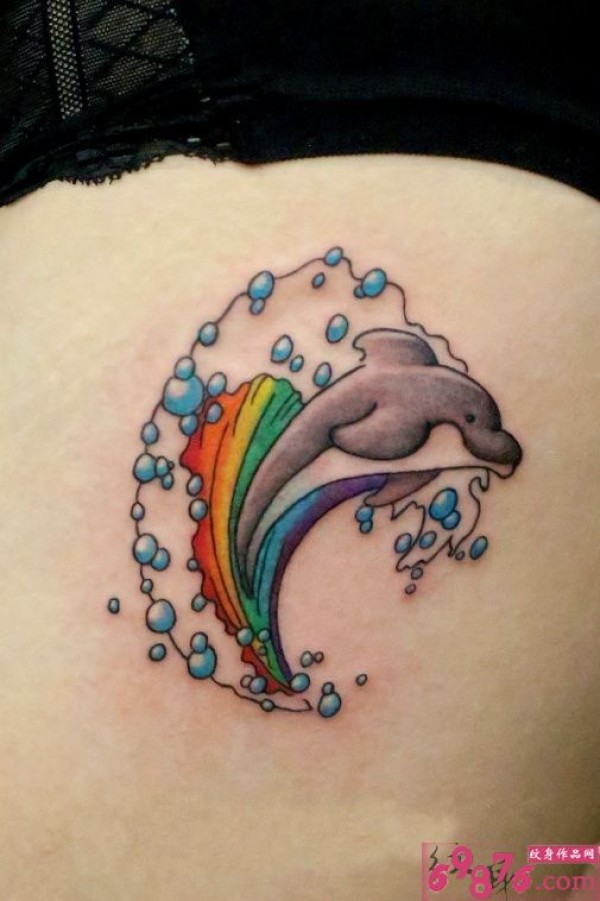 可爱七彩海豚大腿纹身_腿部纹身图案大全_纹身图吧