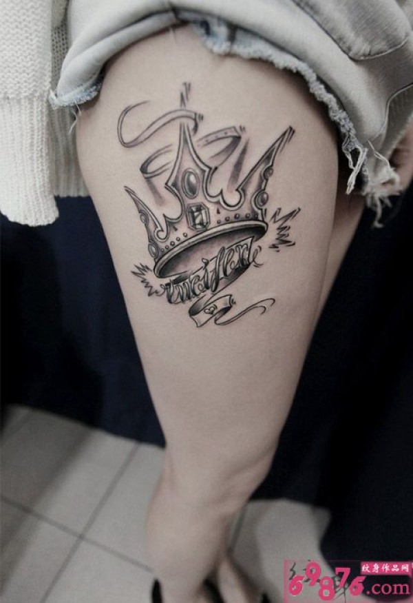 唯美皇冠英文大腿纹身_腿部纹身图案大全_纹身图吧