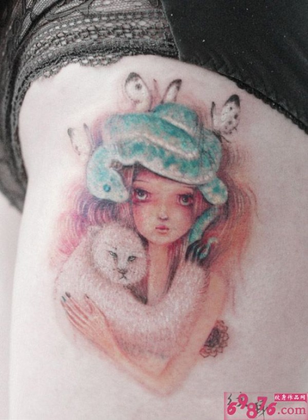 腿部彩色精灵纹身图_腿部纹身图案大全_纹身图吧