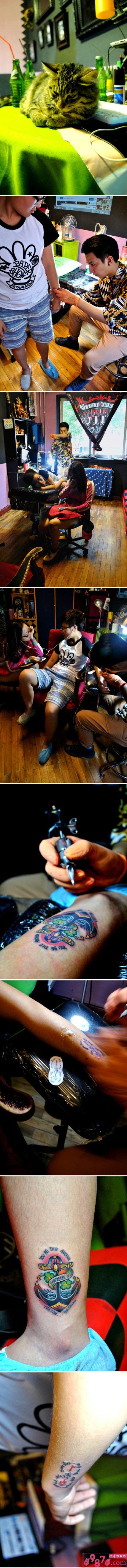 腿部亮色现场纹身现场_腿部纹身图案大全_纹身图吧