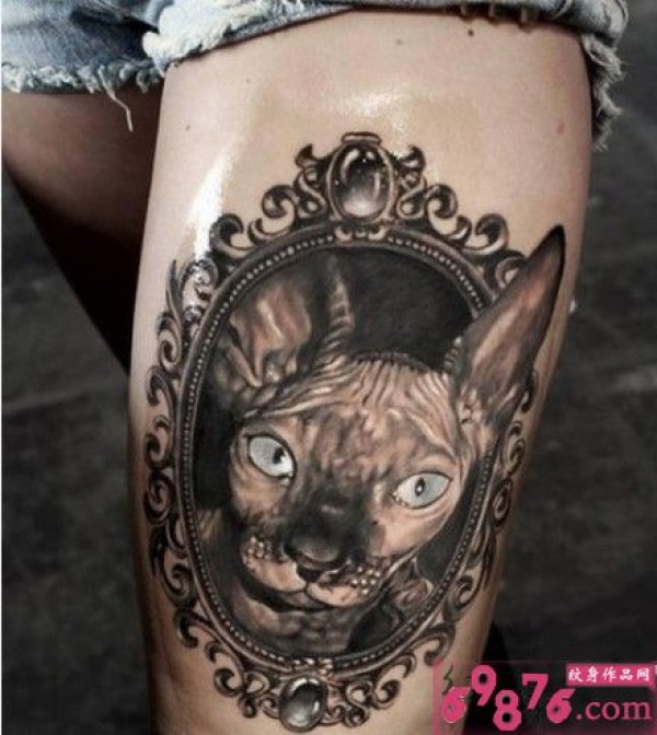 大腿宠物狗复古风格纹身_腿部纹身图案大全_纹身图吧