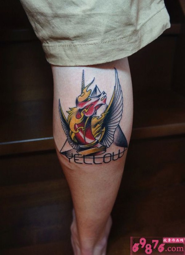 火焰色飞马小腿纹身_腿部纹身图案大全_纹身图吧