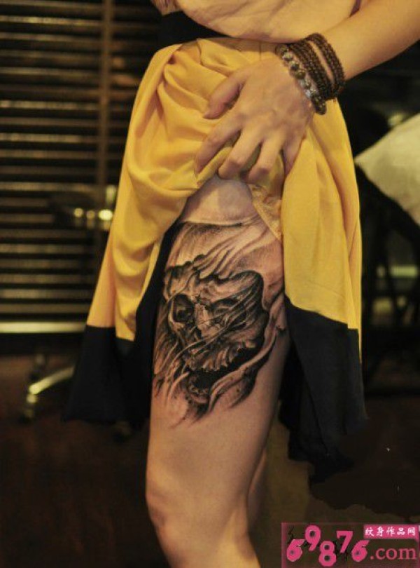 创意欧美骷髅大腿纹身_腿部纹身图案大全_纹身图吧