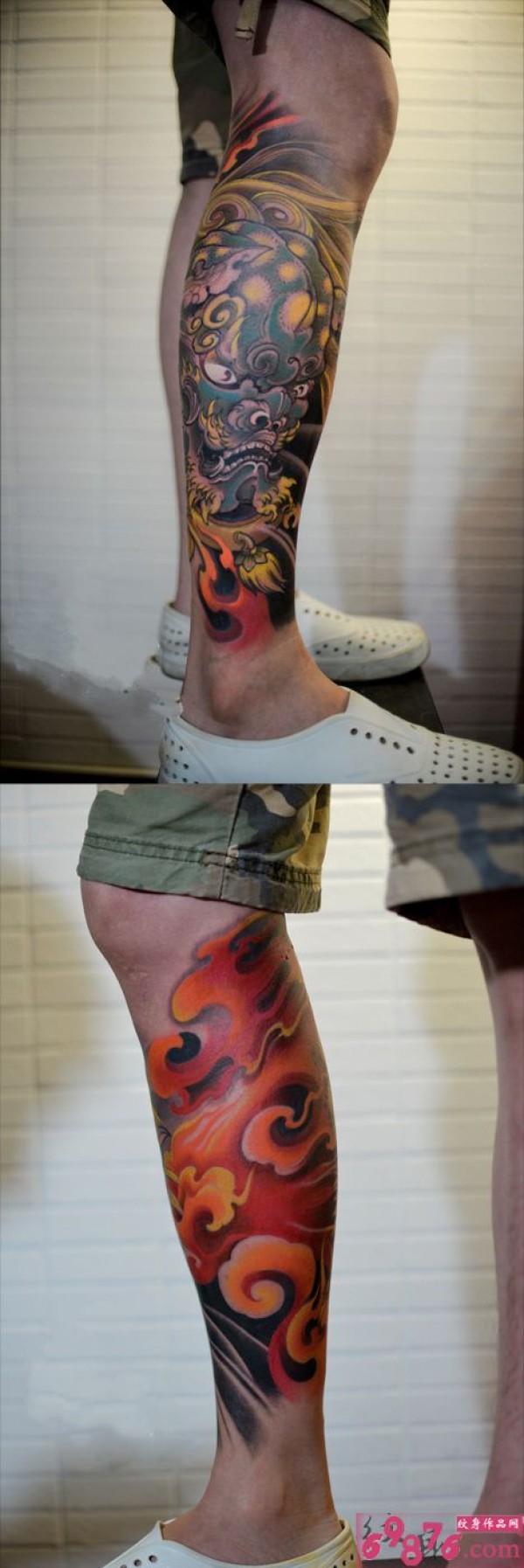 花腿小唐狮子个性纹身_腿部纹身图案大全_纹身图吧