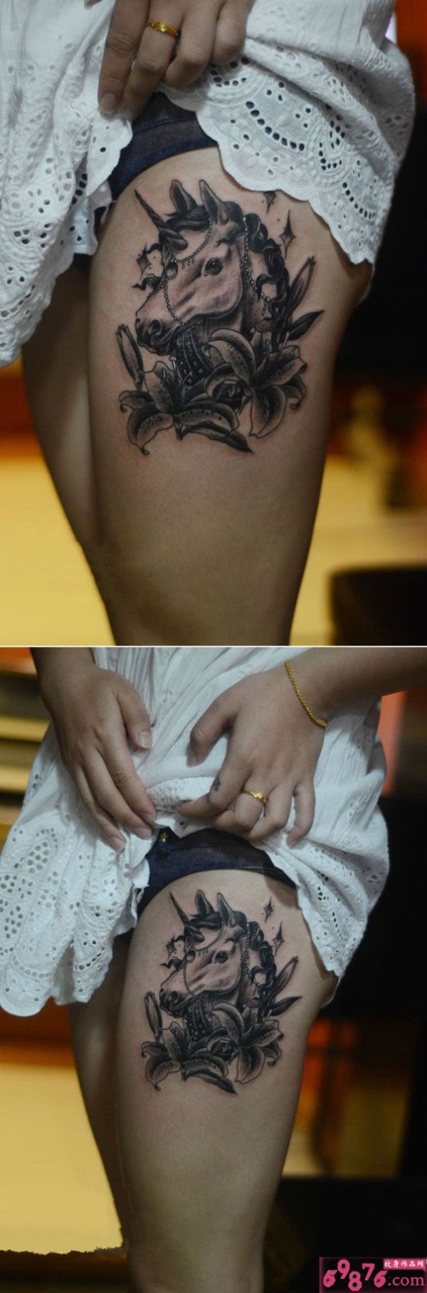 欧美独角兽大腿纹身_腿部纹身图案大全_纹身图吧