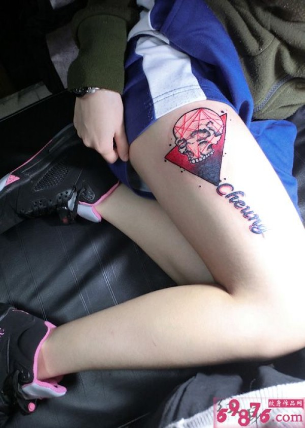 创意设计三角骷髅大腿纹身_腿部纹身图案大全_纹身图吧