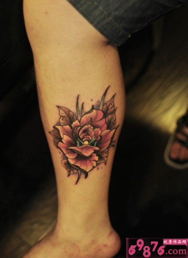彩色花小腿纹身_腿部纹身图案大全_纹身图吧