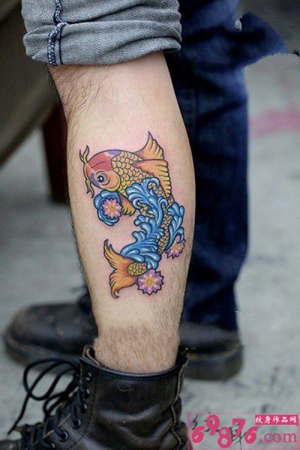 彩绘风鲤鱼小腿纹身_腿部纹身图案大全_纹身图吧