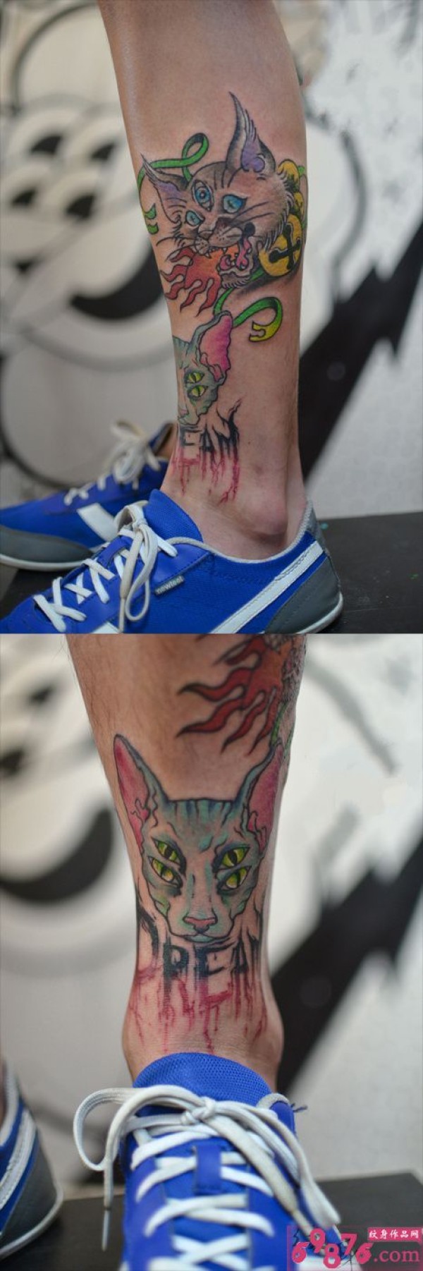 个性创意猫咪小腿霸气纹身_腿部纹身图案大全_纹身图吧